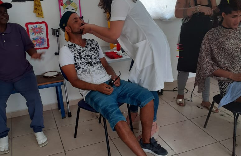 Após um café da manhã de recepção, foram oferecidos serviços de corte de cabelo, barba, designer de sobrancelhas, limpeza de pele e quick massage para as residentes e membros da equipe.